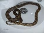 3 corn snakes, Snow corn - Ossie - 18 months old; Crimson corn - Ricky - 14 months old; Carolina corn - Caroline - 12 months old; Amel corn - 6 weeks old - no name yet.